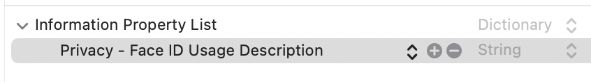 Provide a Privacy description in the plist. For the SDK, Face ID is used, when present, to authenticate with Secure ID, e.g. for opening the wallet or signing transactions. The description will be displayed to the user when the Face ID permission is requested.